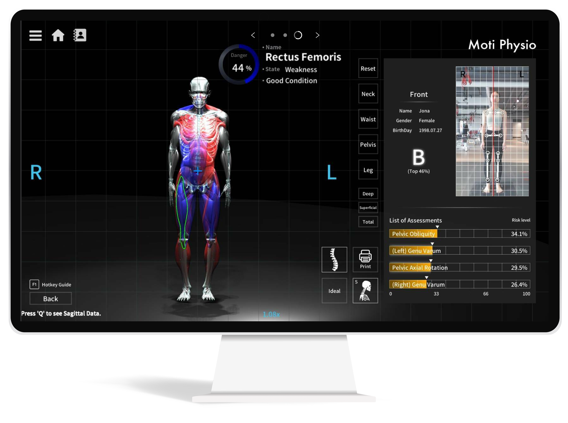 透過3D骨骼肌肉分析儀,透過精密儀器準確測量骨骼歪斜、肌肉拉扯繃緊以及活動姿勢等狀況;配合我們的專業和經驗,得出最客觀而全面的診斷,精準找出病症痛症的根源。